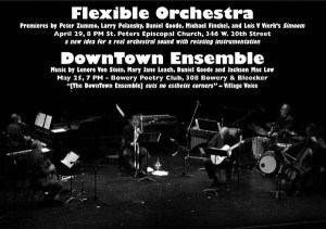 A promotional card for Flexible Orchestra and DownTown Ensemble concerts