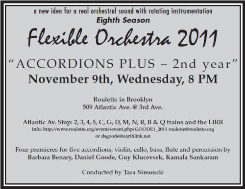 Flexible Orchestra – 8th Year – Nov. 9 at Roulette in Brooklyn, 8 PM, $15/10 – 509 Atlantic Av. @ 3rd Ave.